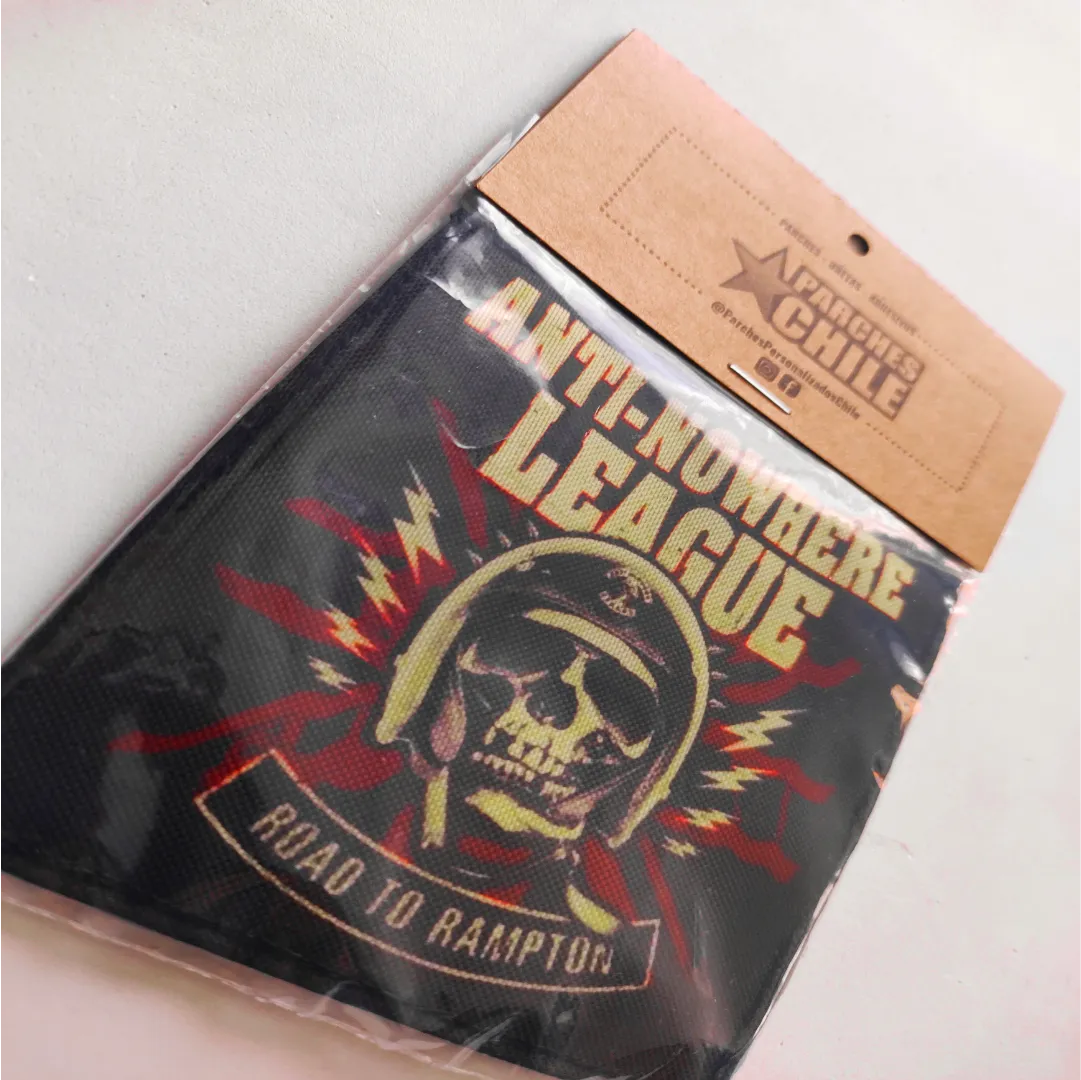 Parche sublimado con diseño de la banda Anti - Nowhere League y su album Road to Rampton.