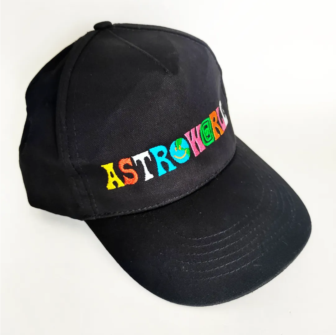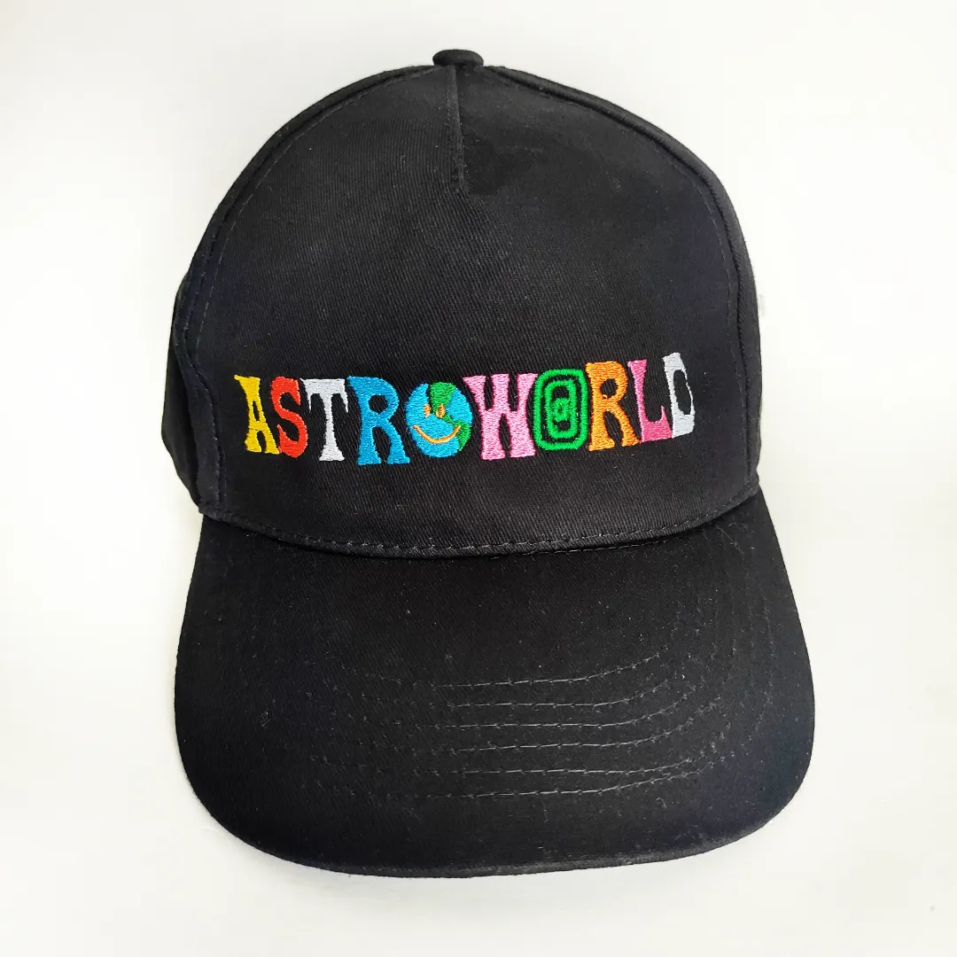 Jockey Bordado con diseño de la banda de Astroworld, tamaño adulto, broche velcro, tela delgada gabardina.
