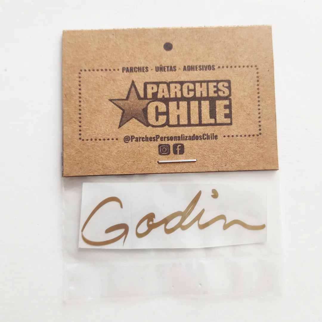 Adhesivo color Dorado Decal para clavijeros con el logo de Godin ideal para restauraciones de guitarras o bajos.