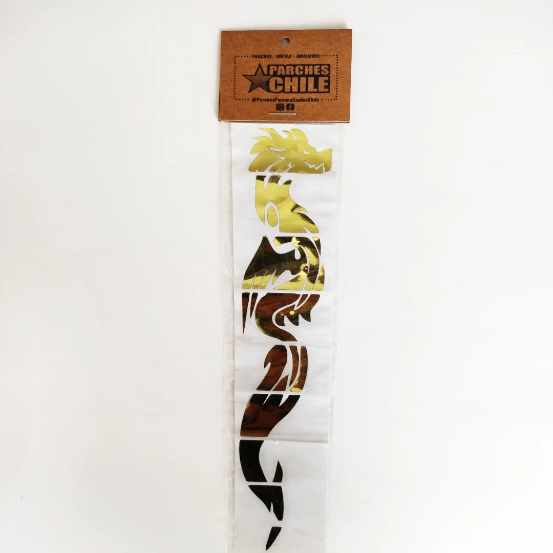 Inlays Adhesivo con diseño de Dragón color Dorado para guitarras eléctricas, medidas en la tercera imagen.