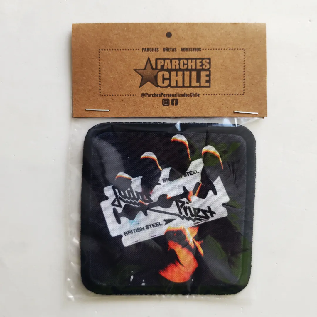 Parche sublimado con diseño de la banda Judas Priest y su album British Steel.