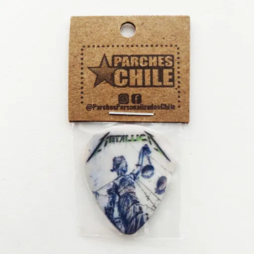 Uñeta impresa con la banda Metallica All Justice For All de un grosor de 1 mm ideal para músicos y guitarristas.