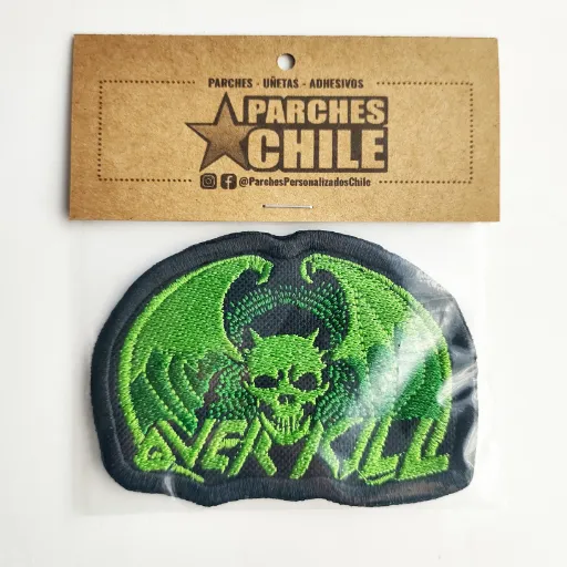 Parche Bordado con diseño de la banda de Overkill Bat, de un tamaño de 10x5 cm ideal para coser en chaquetas de mezclilla.