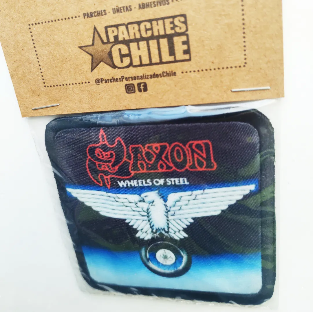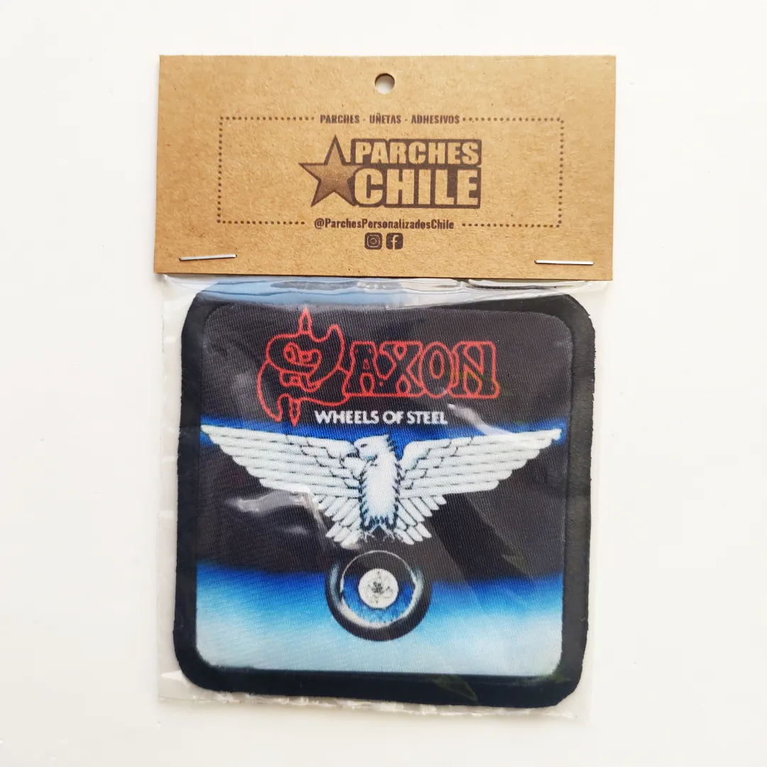 Parche sublimado con diseño de la banda Saxon album Wheels of Steels.
