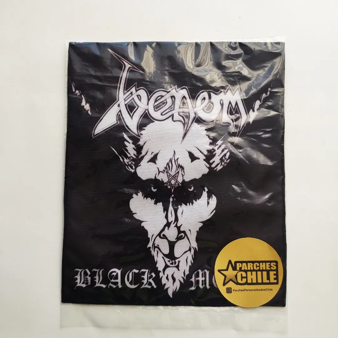 Espaldera Sublimada con diseño de la banda Venom Album Black Metal.