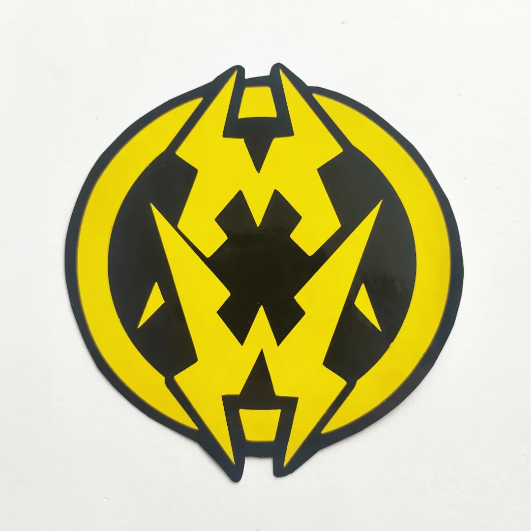 Adhesivo de vinilo cortado con el diseño del logo de municipal waste de un tamaño de 10,5x9,5 centímetros aproximados, ideal para pegar sobre superficies lisas de guitarras,baterías,bajos,autos,motos,ventanas,etc.